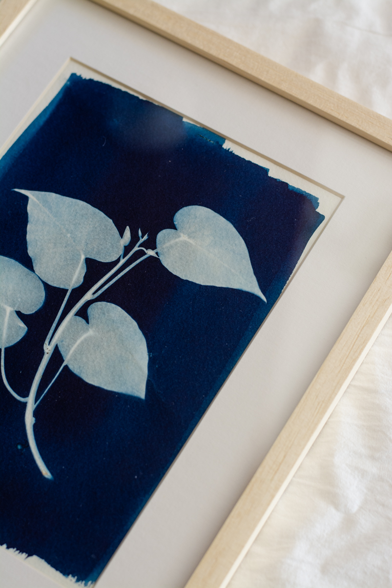 $90.000Cianotipia original realizada en papel del algodón fine art. Enmarcado box, en madera marupá, con ventana de passepartout. Listo para colgar. Una pieza única e irrepetible.