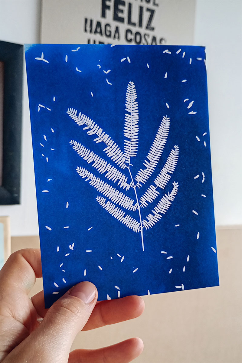 $6.000Copia de cianotipia, tamaño 15x10cm. Impresión en alta calidad, papel chambril 240gr.